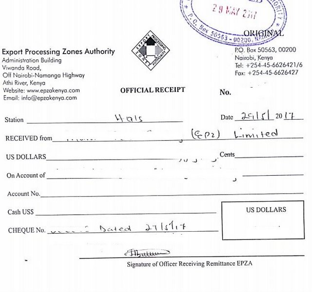 For application of EPZ manufacturing enterprise licence application fees.