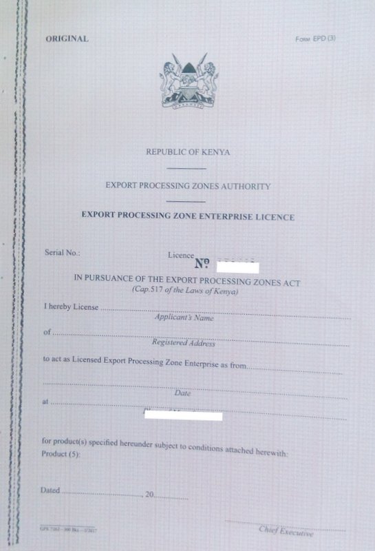 For issuance of EPZ enterprise licence