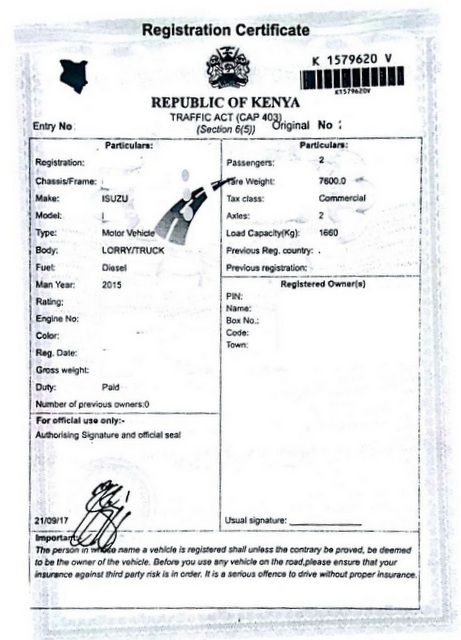 Vehicle ownership document (logbook) (copy)